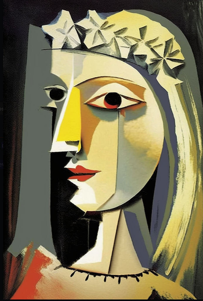 AI Graphic Artist's Comments: AI graphics in the style of Pablo Picasso You are welcome to copy any of the images for personal use. Commercial use is prohibited. The AI graphic artists who created the images hold copyright (C) over their works. NSFW images are not permitted on this website.
